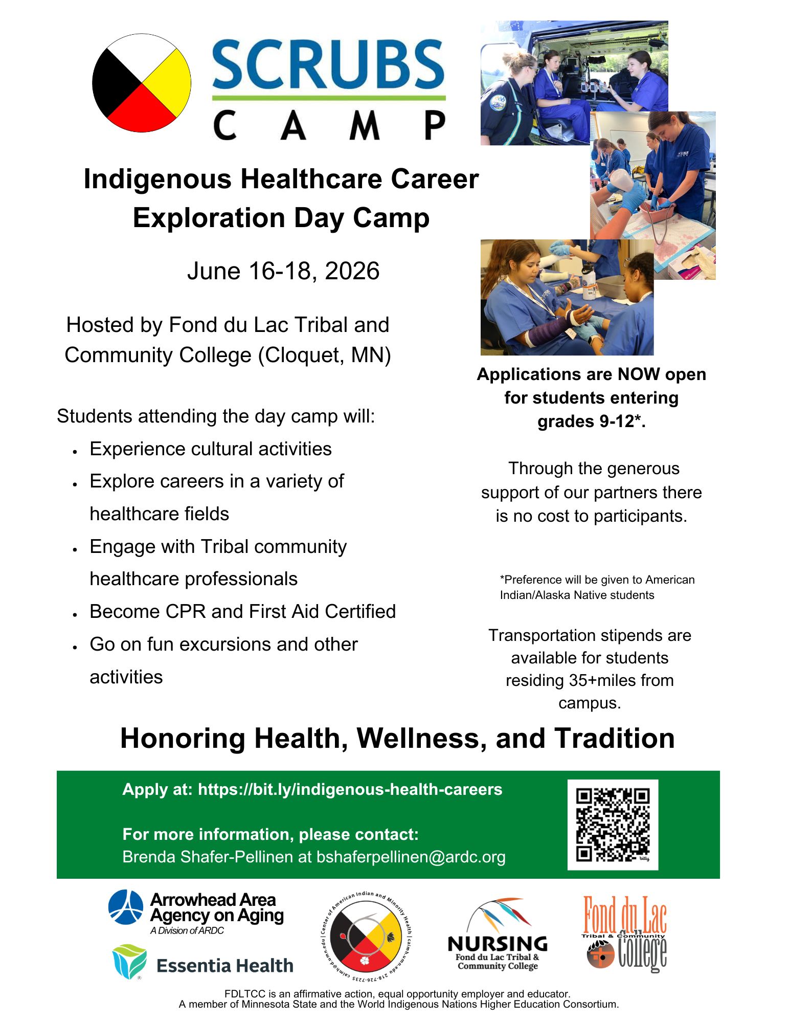 Applications for the Indigenous Healthcare Career Exploration Camp open in February 2026. This program is open to Indigenous students entering grades 9-12 who are eager to explore healthcare careers while maintaining strong ties to their cultural roots. Don’t miss this opportunity to be part of a transformative experience that blends tradition with innovation.